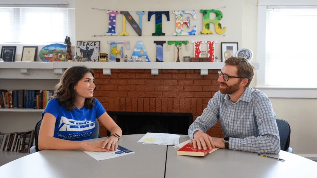 The Compass Center supports various faith, spiritual, and secular student communities. The Compass Center Director, Daniel Meyers, loves working with students like Jenna Burd ’26, helping them accomplish their goals.