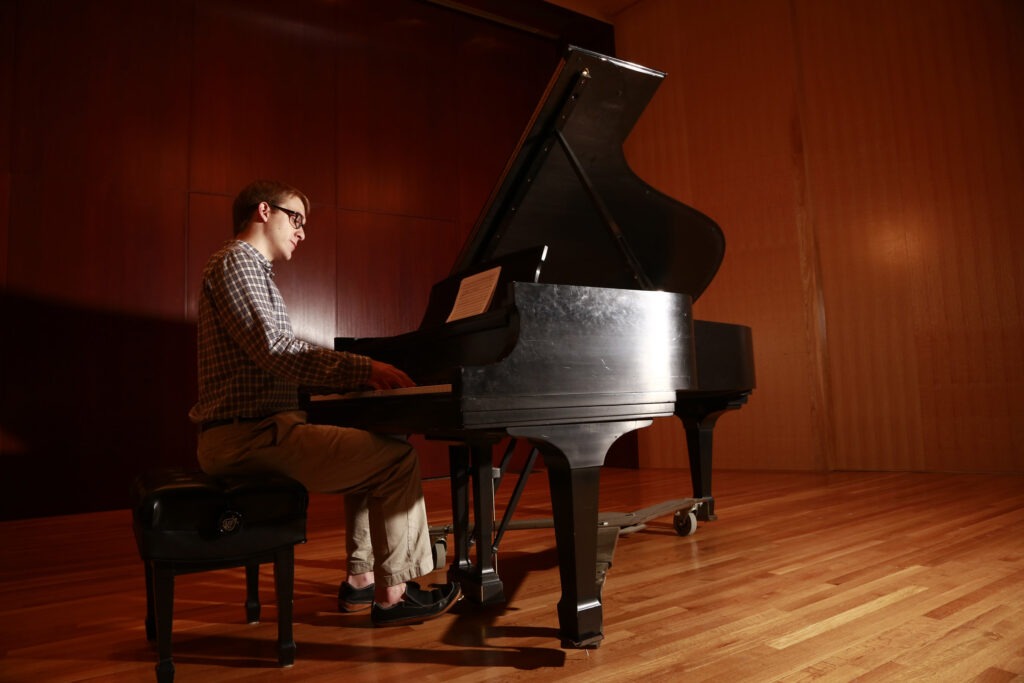 At Butler, Harris describes himself as a “leaf in the wind,” still exploring whether to pursue performance, composition, or something entirely different. That began to shift midway through his sophomore year when he chose to focus fully on writing original music. “I decided to stop studying other people’s music and devote all my time to creating my own,” he says. “That kind of freedom—and trust—from my professors made all the difference.”